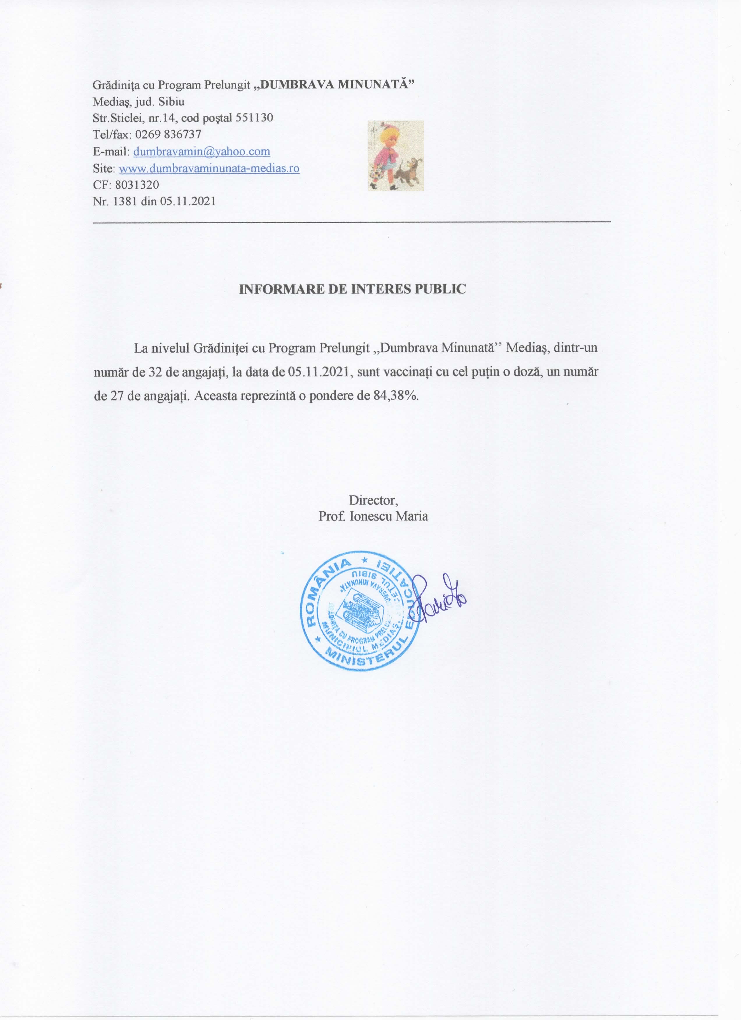 Gradinita “Dumbrava Minunata” este asezata in cartierul Vitrometan, in partea sudica a orasului Medias,intr-o zona inconjurata de case si alte doua institutii de invatamant: Scoala Generala Nr.3 si Colegiul Tehnic Mediensis.
